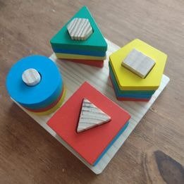 Excelente herramienta para ayudar a los niños a aprender sobre formas geométricas y a desarrollar habilidades motoras finas. Hecho con materiales de alta calidad y seguros para jugar.