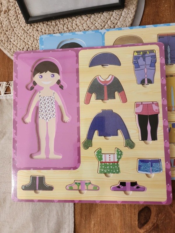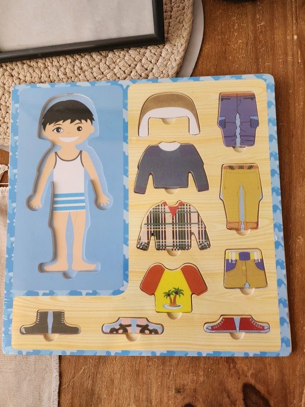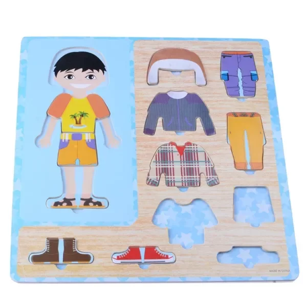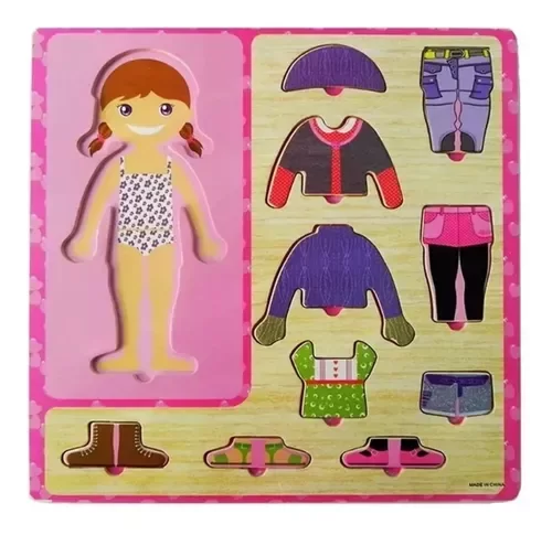 JUEGO DIDÁCTICO DE MADERA ROMPECABEZAS CON ENCASTRE PARA VESTIR -30CM*30CM